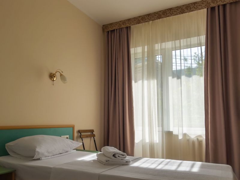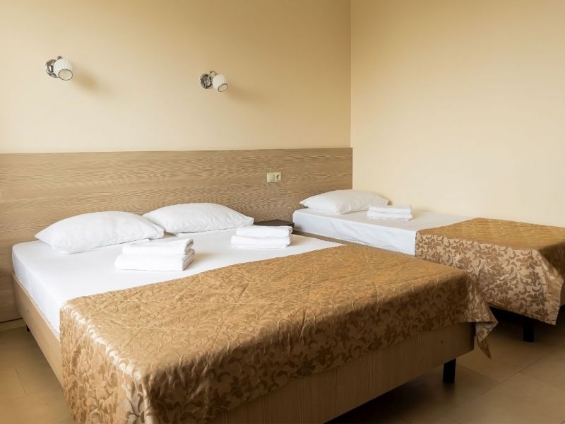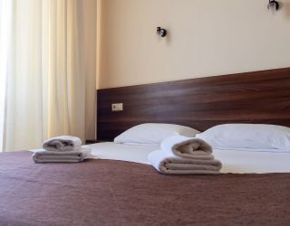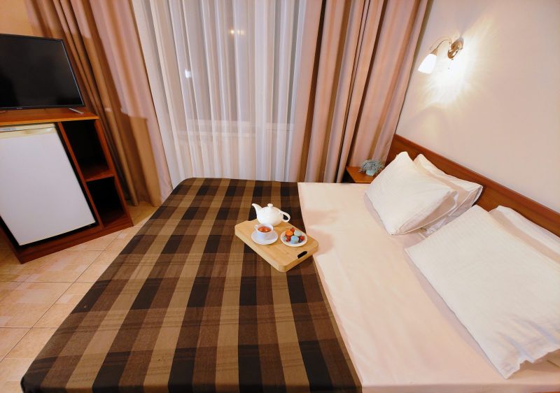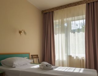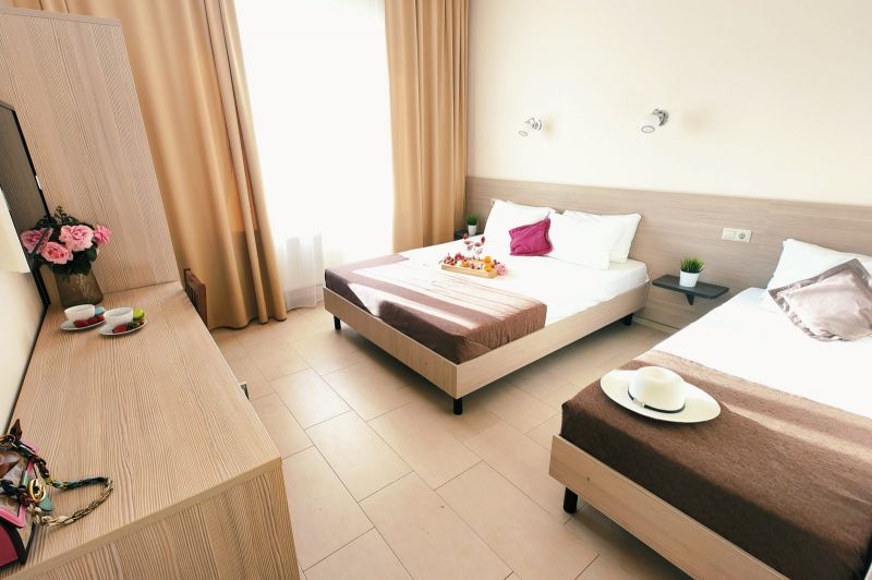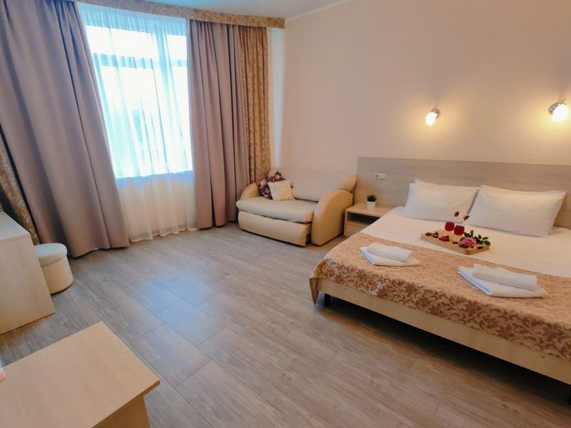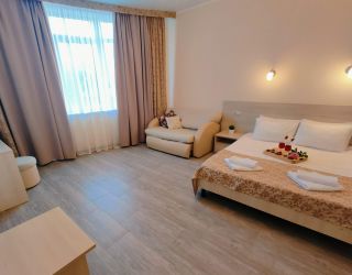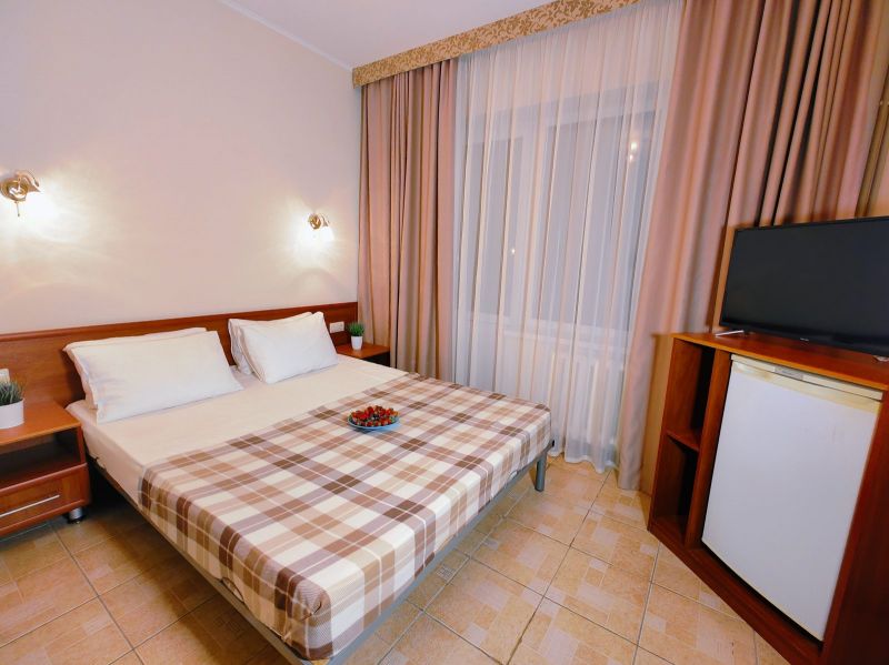 Номерной фонд отеля располагается в 2 корпусах высотой в 5 и 6 этажей. В зданиях есть лифты. Номера уютные, просторные, современные. В каждом номере есть все необходимое для отдыхающих, предусмотрен собственный санузел. На территории отеля есть столовая и кафе с широким меню. В шаговой доступности функционируют разнообразные точки общественного питания.