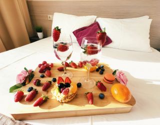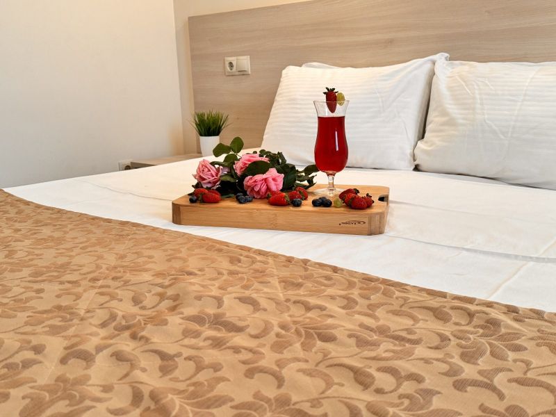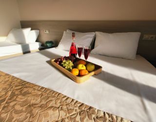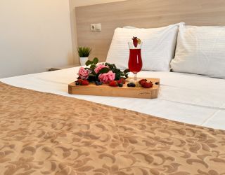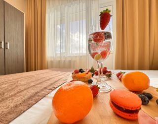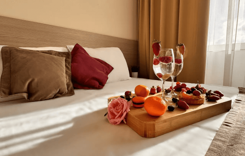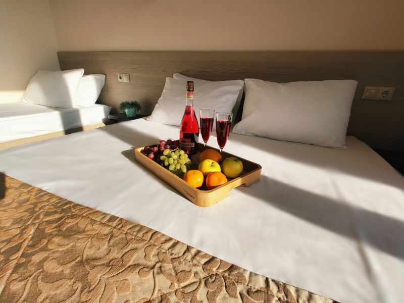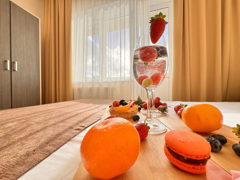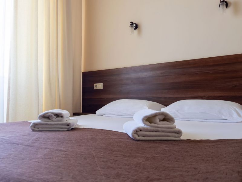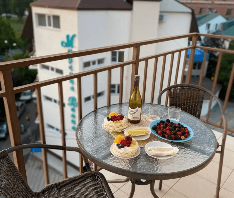 Номерной фонд отеля располагается в 2 корпусах высотой в 5 и 6 этажей. В зданиях есть лифты. Номера уютные, просторные, современные. В каждом номере есть все необходимое для отдыхающих, предусмотрен собственный санузел. На территории отеля есть столовая и кафе с широким меню. В шаговой доступности функционируют разнообразные точки общественного питания.