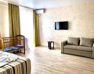 Поездом до ж/д вокзала г. Анапа, далее 69 м до остановки «Вокзал Анапа», далее на маршрутном такси №100 до остановки «Дельфинарий», далее 1,2 км до отеля.