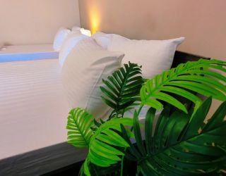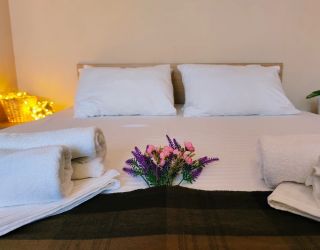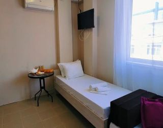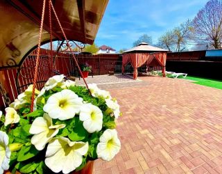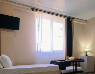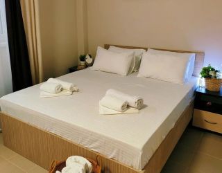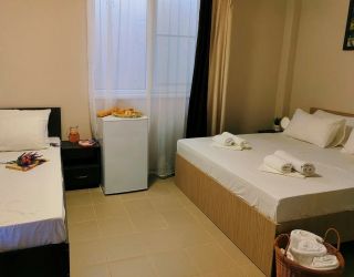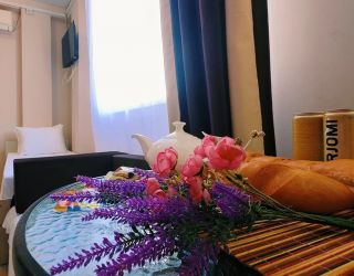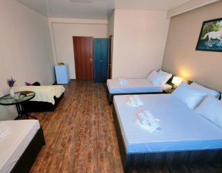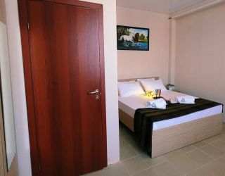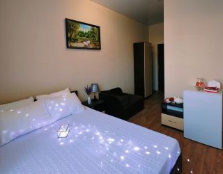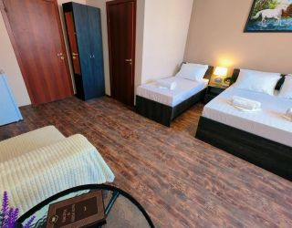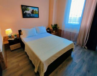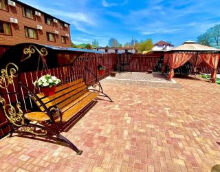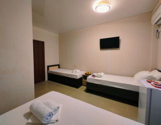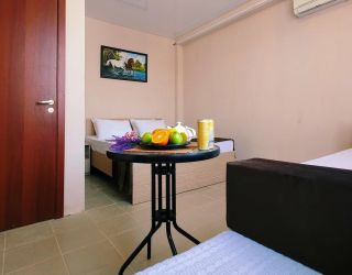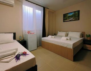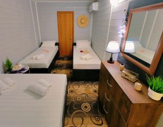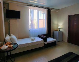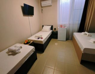 Двухэтажный корпус гостевого дома занимает закрытую территорию, расположенную всего в 400 метрах от моря. Помимо основного корпуса отдыхающие могут разместиться в финских домиках. В распоряжении гостей номера разных категорий, в том числе есть эконом варианты с общим санузлом. Во всех комнатах имеются кондиционер, телевизор, беспроводной интернет.