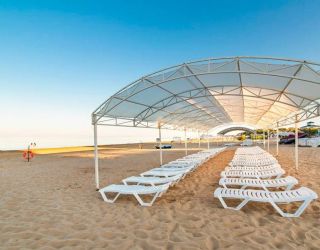 Всего в 5 минутах ходьбы разместился широкий песчаный пляж, оборудованный навесами и шезлонгами.