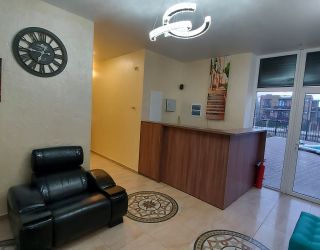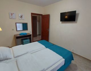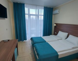 Современный трехэтажный корпус гостевого дома находится на закрытой территории, обнесенной невысоким кованным забором. Гостей ожидают комфортабельные номера разной площади и вместимости. В каждом номере предусмотрен собственный санузел, где для гостей подготовлены косметические наборы, в комнатах есть кондиционеры и техника: холодильник, телевизор.