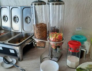 В гостевом доме работает столовая, к услугам отдыхающих уличный бассейн, рядом с которым организована небольшая зона отдыха с шезлонгами. На всей территории доступна сеть wi-fi, а для гостей, приезжающих на машинах, оборудованы парковочные места.