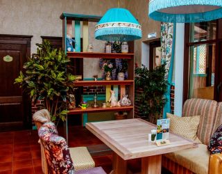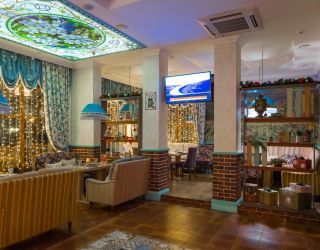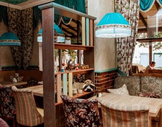 Кафе предлагает гостям отеля отдых и вкусные блюда русской кухни в современной интерпретации. Гости могут выбрать для трапезы светлый просторный зал, открытую веранду или кальянную. Приятная обстановка и легкое музыкальное сопровождение располагают к проведению романтических вечеров, семейных обедов, встреч с друзьями, а также подходит для проведения банкетов и корпоративных приемов. Визитная карточка кафе - блюда из собственной коптильни, натуральные морсы, компоты, варенье из "бабушкиной кладовой".