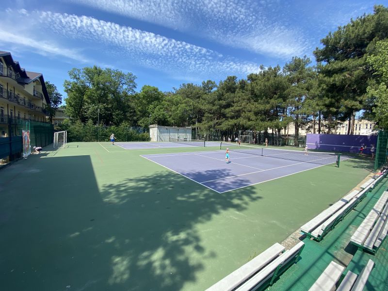 Для маленьких гостей работают аниматоры, есть детская комната и площадка, с детьми занимается воспитатель. Также имеется инфраструктура для занятий спортом – это спортивный и тренажёрный залы, открытая площадка для игр в волейбол, баскетбол и прочие подвижные игры, теннисные корты, поле для мини-футбола. В распоряжении санатория имеется собственный пляж, библиотека, парикмахерская, массажный и косметологический кабинет, магазин. Поскольку в здравнице есть собственное экскурсионное бюро, можно разнообразить отдых, посетив близлежащие достопримечательности.