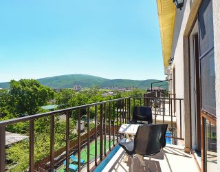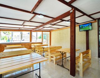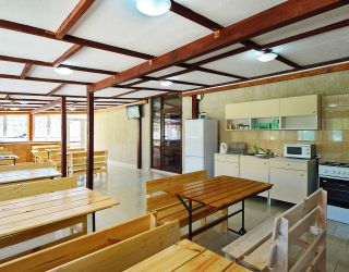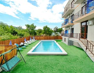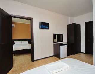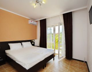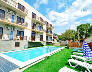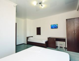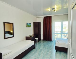 Небольшой трехэтажный корпус расположен на закрытой охраняемой территории в 800 метрах от моря. В распоряжении отдыхающих стандартные номера, рассчитанные на разное число гостей. В каждом номере есть собственная ванная комната, сплит-система, а также телевизор и небольшой холодильник, кроме того, в ряде номеров имеются балконы.