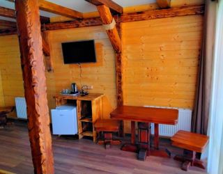 Дома, высотой в 1 и 2 этажа, рассчитаны на разное количество проживающих. Внутренняя отделка выполнена из натурального дерева. Комнаты полностью меблированы, в них установлены телевизор с плоским экраном, электрический чайник, холодильник, работает Wi-Fi. Санузел оснащен современной сантехникой. Также предлагается к заселению дом с собственной сауной. На открытых террасах предусмотрены мангалы и места для отдыха со столами. По запросу организуются экскурсии по природным достопримечательностям Адыгеи.