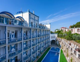 Отель «1001 ночь» находится в центре курортного поселка Мисхор. Рядом знаменитый Мисхорский парк - памятник садово-паркового искусства, который протянулся на 3 км вдоль побережья, Воронцовский дворец, нижняя станция канатной дороги на гору Ай-Петри, в доступности общественным транспортом – Ливадийский дворец, Ласточкино гнездо.