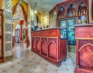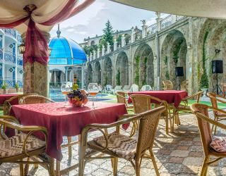 К услугам гостей отеля «1001 ночь» в Ялте: ресторан, открытый бассейн, бар у бассейна, восточная кофейня, тренажерный зал, СПА-комплекс (бани: русская, турецкая, финская, кабинет массажных технологий.