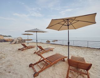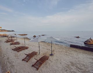 В ста пятидесяти метрах находится городской галечный пляж. Благоустроенный пляж оснащен раздевалками, душевым, навесами и лежаками, в окрестностях – много баров и кафе, водных развлечений.