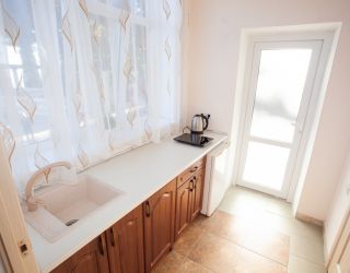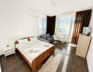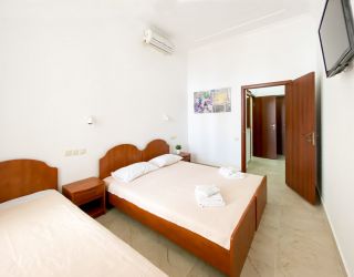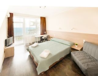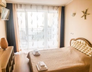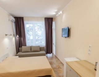 До галечного пляжа всего 500 метров. Пляж оборудован: на побережье есть раздевалки, теневые навесы, зонтики от солнца, лежаки, много водных развлечений.