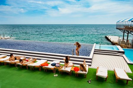 Поездом до ж/д вокзала г. Симферополь, далее на автобусе «Симферополь – Ялта» до остановки «Автовокзал Ялта», далее на автобусе №115 до остановки «Верхний Мисхор», далее 960 м до отеля.