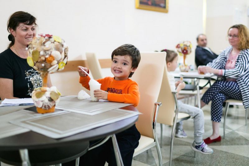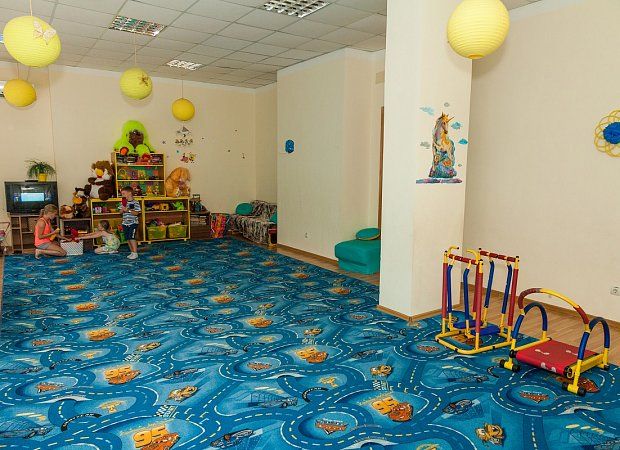 Для детей открыты детская комната с воспитателем и летняя игровая площадка. Здесь организовывают развивающие занятия и игры, проводятся занятия по рисованию.