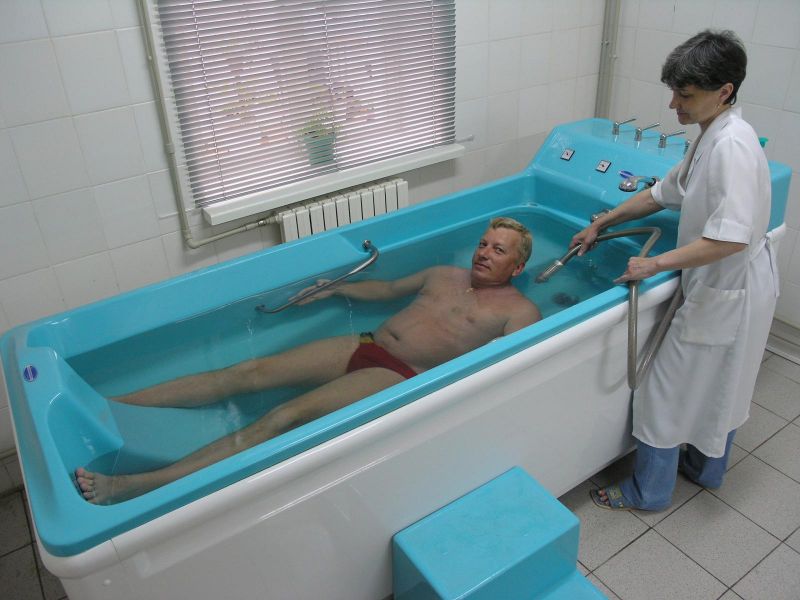 - гидрокомплекс: 1 водная процедура через день (ванна или душ циркулярный по показаниям) - в рабочий день при наличии в санатории;