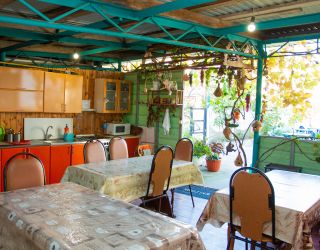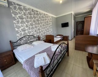 Гостевой дом занимает небольшую благоустроенную территорию, расположенную на тихой улице среди частного сектора. В распоряжении гостей бюджетные варианты с санузлом на этаже и стандартные номера с собственной ванной комнатой. Кроме того, во всех номерах есть кондиционер, телевизор и мини-холодильник.