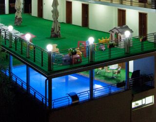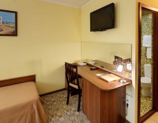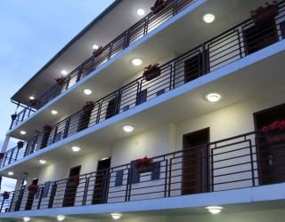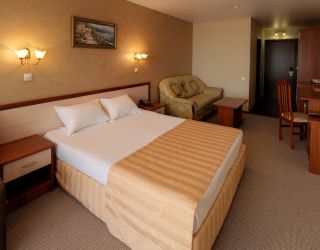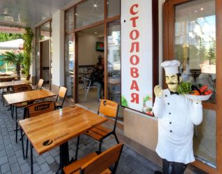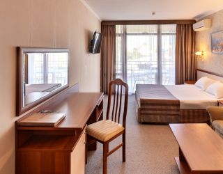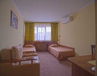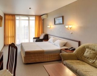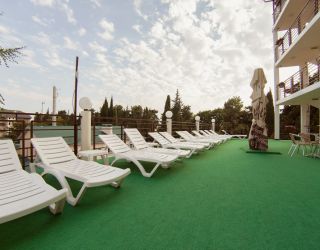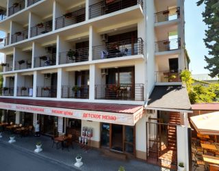 Семиэтажный отель, разместился в 100 метрах от Черноморского побережья. Гостей ожидают комфортабельные двухместные номера Стандарт. Каждый номер оборудован сплит-системой и собственным санузлом, в комнатах — удобный мебельный гарнитур, есть телевизор-ЖК, холодильник, фен. На первом этаже отеля работают пиццерия и столовая, в которой гости могут заказать блюда европейской и кавказской кухни. В распоряжении отдыхающих открытый бассейн с пресной водой, лаундж-зона и бильярд. На всей территории ловит сеть Wi-Fi, возле корпуса организована автостоянка. Для юных туристов организована игровая площадка, детей развлекают аниматоры, малышам предоставляются стульчики для кормления и кроватки-манежи.