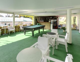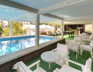 Городской галечный пляж, расположенный в двух минутах ходьбы от отеля, оснащен всем необходимым для отдыха. Вдоль побережья работают бары и кафе, на пляже есть навесы, лежаки, отдыхающим доступен прокат шезлонгов и зонтиков, большой выбор водных развлечений.
