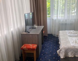 Пансионат занимает озелененную территорию площадью 4000 кв.м., на которой разместились 5 спальных корпусов разной этажности и отдельно стоящее здание столовой. Гостей ожидают номера разной категории: Бюджет, Стандарт, Люкс. В каждом имеется индивидуальный санузел, телевизор и холодильник. Номера улучшенной категории укомплектованы дополнительной бытовой техникой, есть кондиционер или установлена сплит-система. В некоторых номерах предусмотрены балконы.
