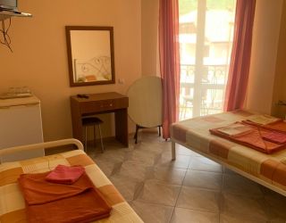 Четырехэтажный корпус отеля с высоким цоколем занимает закрытую благоустроенную территорию площадью 2000 кв.м. Гостей ожидают небольшие уютные номера, в каждом из которых есть санузел с душем, телевизор, холодильник и кондиционер.