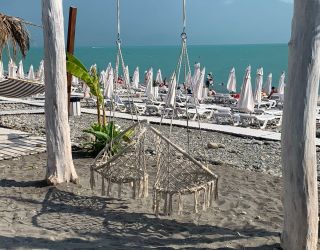 В 10—15 минутах ходьбы находится оборудованный пляж. На галечном побережье установлены раздевалки, есть навесы, лежаки и шезлонги.