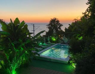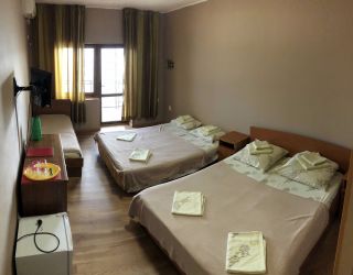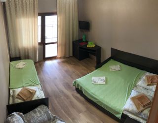 Небольшой четырехэтажный корпус гостевого дома находится на благоустроенный территории всего в 50 метрах от моря. Гости могут разместиться в однокомнатных Стандартах или в двухкомнатных номерах Люкс. Номера хорошо оснащены и укомплектованы: везде есть кондиционер, индивидуальный санузел, бытовая техника, балконы. Номера Люкс дополнительно оборудованы мини-кухней.