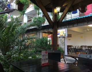 В минуте ходьбы — городской галечный пляж. Вдоль побережья установлены кабинки для переодевания и душевые, открыто кафе, работает прокат шезлонгов и другого пляжного оборудования.
