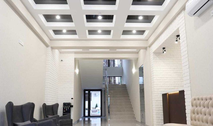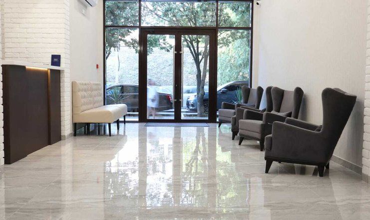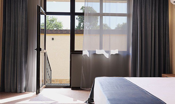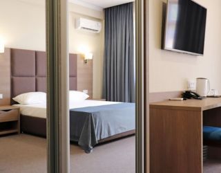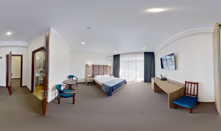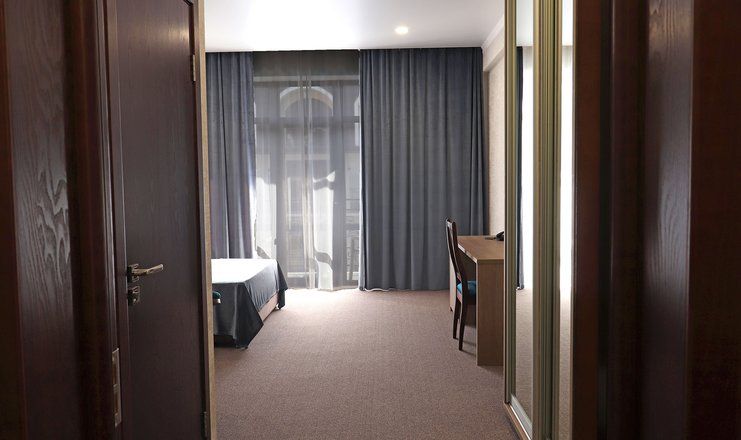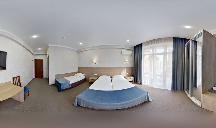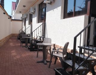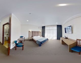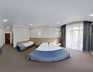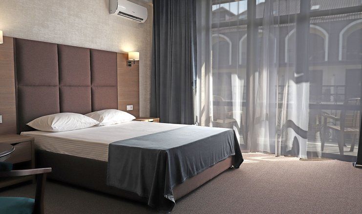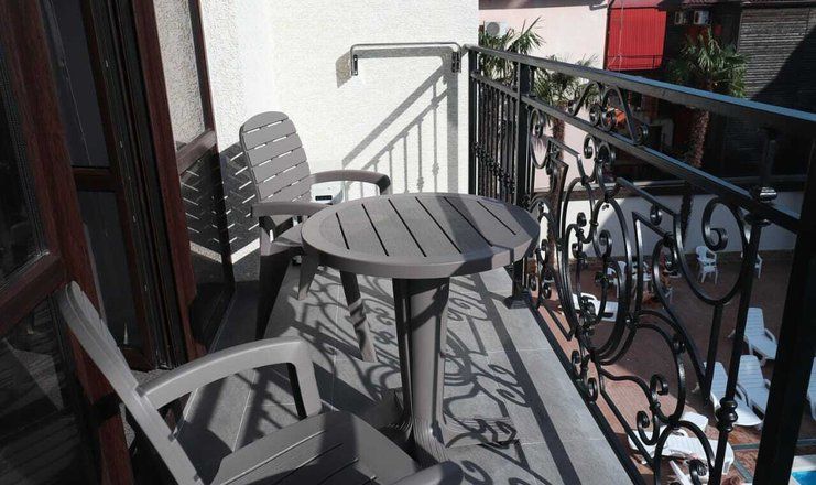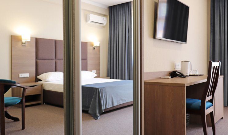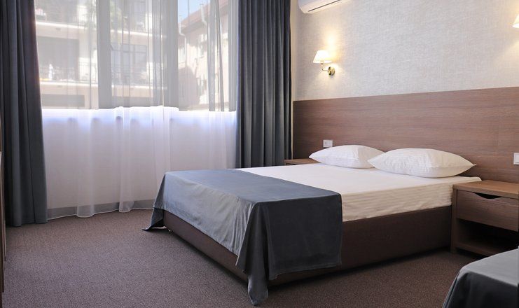 Два четырехэтажных корпуса гостевого дома расположились всего в 700 метрах от побережья на закрытой благоустроенной территории. Гостей ожидают номера разных категорий — Стандарт, Семейный, Улучшенный, Комфорт и Люкс. В комнатах современный интерьер, выдержанный в приятных светлых оттенках, есть все необходимое для комфортного размещения - удобный мебельный гарнитур, бытовая техника: кондиционер, фен, плазменный телевизор, индивидуальный санузел с душем. В ряде номеров предусмотрены балконы, мансарды или патио.