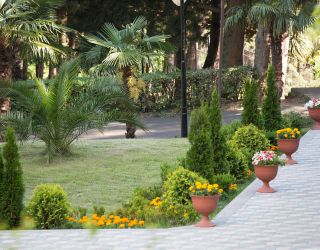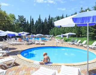 Поездом до ж/д вокзала станции Лазаревское. Далее на автобусе №68 до остановки «Почта». Далее пешком 800 м до пансионата.
