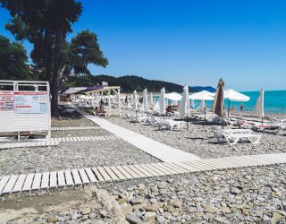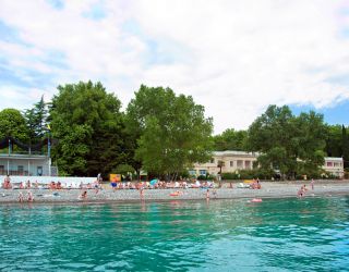 В 200 метрах от корпусов находится собственный пляж санатория. На побережье установлены раздевалки, есть навесы, шезлонги.