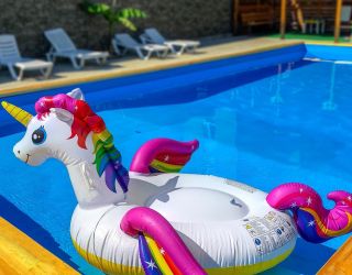 Для удобства отдыхающих в гостевом доме есть уличный бассейн, а рядом с ним — зона отдыха с шезлонгами. Среди услуг — интернет, охраняемая парковка, для детей оборудована игровая площадка.