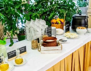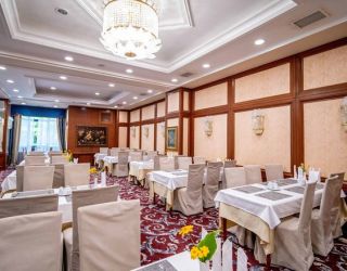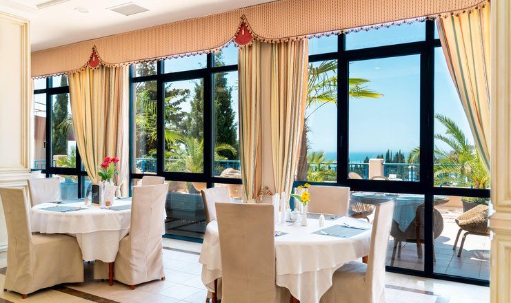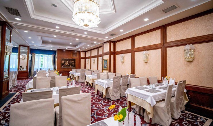 Питание по санаторной путевке обеспечивает главный ресторан (система заказного меню или «шведского стола»). В меню – популярные блюда русской и кавказской кухни, а также украинской и европейской.
