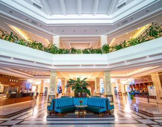 Здесь есть как сезонный, так и крытый, пресноводный бассейн. А еще – прачечная, банный комплекс, площадки для занятий спортом, библиотека, салон красоты, парикмахерская, массажный кабинет, магазины (пляжных принадлежностей, сувенирный и продуктовый), три ресторана, включая пляжный, и бар.