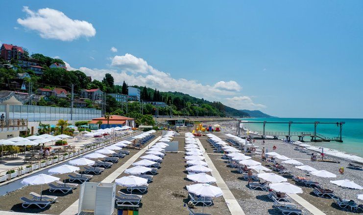 Жемчужина Лазаревского взморья - курортный отель «Одиссея» - расположен в 150 метрах от моря, в знаменитом Сочинском дендропарке с четырьмя сотнями видов субтропической флоры, треть которых больше нигде не встречается. Она стала воплощением мечты о курортном отдыхе для тысяч отдыхающих. Сюда приезжают гости со всей страны – совместить лечение с приятным отдыхом на лучшем санаторном песчано-галечном пляже.
