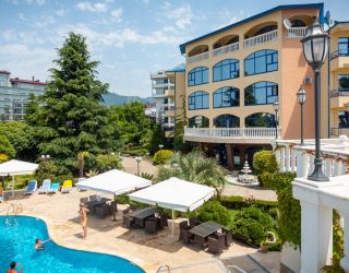 Четырехзвездочный пансионат «Виктория-Отдых» расположен на первой линии Черноморского побережья в курортном поселке Лазаревское.