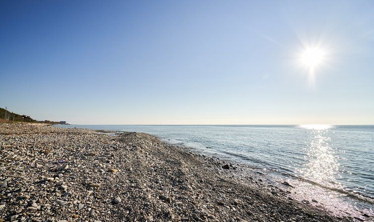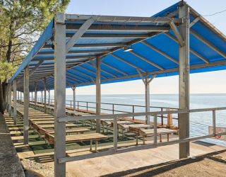 Всего в 150 метрах от спальных корпусов находится собственный пляж санатория с лечебным аэрарием. Каменисто-галечный пляж оборудован: на побережье есть все необходимое для комфортного пляжного отдыха: раздевалки, душевые, шезлонги, навесы.
