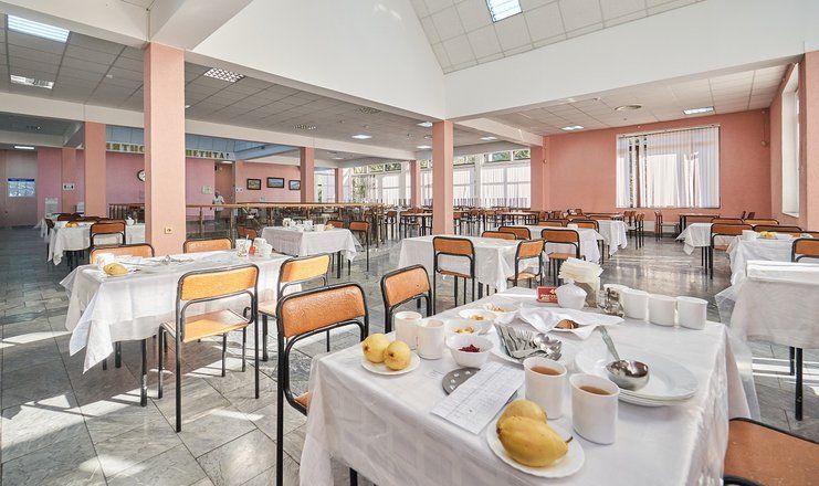 В столовой отдыхающие могут заказать трехразовое питание, в том числе и диетическое. В распоряжении гостей оборудованная парковая зона для отдыха, проложены терренкуры, организованы спортивные площадки, есть настольный теннис. Вечером отдыхающие могут посмотреть фильм или посетить одно из развлекательных мероприятий. Для юных гостей на территории организована игровая площадка.