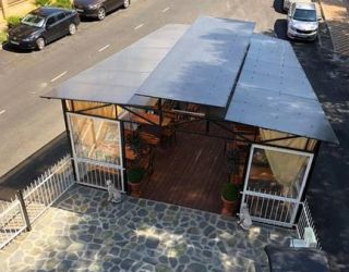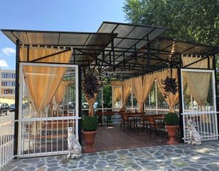 Для гостей во внутреннем дворике оборудована зона для барбекю с мангалами, столиками и беседкой, также к услугам гостей — беспроводной интернет, автопарковка и прачечная.