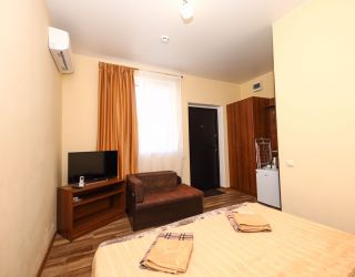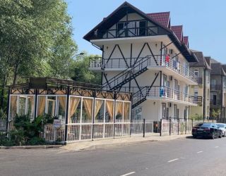 Четырехэтажный корпус с мансардой, выстроенный в стиле альпийского шале, разместился на берегу реки Псезуапсе в 150 метрах от морского побережья. В распоряжении гостей стандартные номера с удобствами и Апартаменты с мини-кухней.