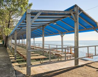 Всего в 150 метрах от спальных корпусов находится собственный пляж санатория с лечебным аэрарием. Каменисто-галечный пляж оборудован: на побережье есть все необходимое для комфортного пляжного отдыха: раздевалки, душевые, шезлонги, навесы.