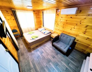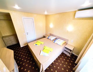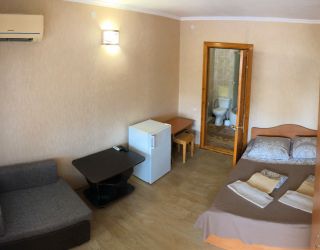 Гостевой дом разместился на небольшой ухоженной территории на первой береговой линии. Жилой фонд, рассчитанный на 40 человек, предлагает номера разных категорий комфорта: есть как бюджетные варианты с санузлом на этаже, так и стандартные номера или студио, оснащенные мини-кухней. В каждом номере независимо от категории предусмотрен кондиционер и имеется телевизор с плоским экраном.