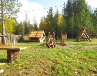 На территории работает кафе и настоящая русская баня. Для детей организована игровая площадка с деревянными качелями и горками. Гости на машинах смогут оставить автомобиль на парковке. Летом можно устроить пикник на берегу реки, а зимой — покататься на снегоходах.