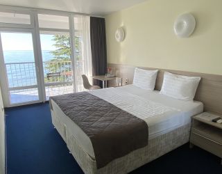Поездом до ж/д вокзала г. Сочи, далее на маршрутное такси №30 до остановки «Мамайка», далее пройти 830 м до отеля.