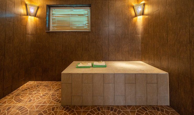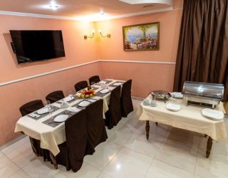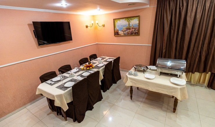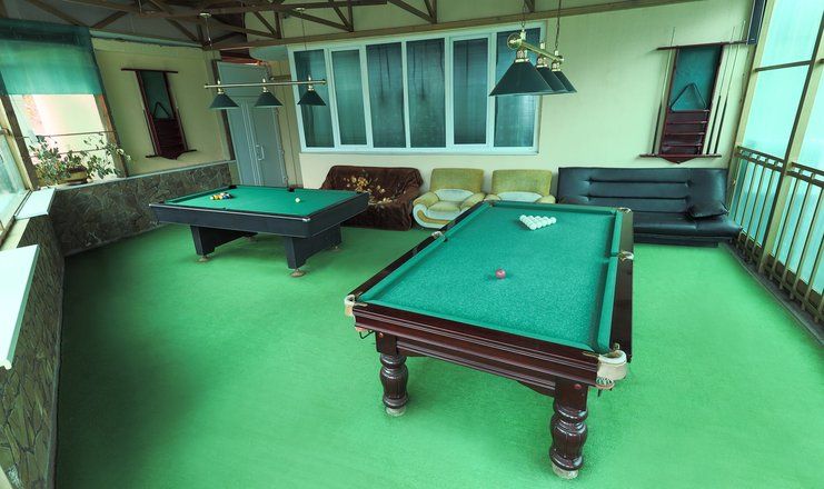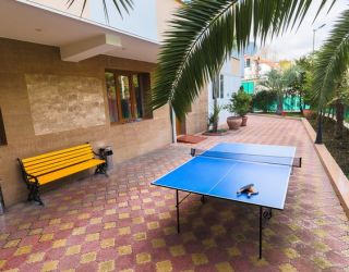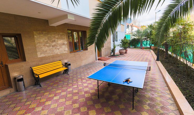 Для постояльцев в столовой отеля ежедневно сервируют завтраки, также гости по желанию могут приобрести обеды и ужины, на территории работает летнее кафе. В отеле есть открытый бассейн с джакузи, работающий в теплое время года, организована большая площадка для отдыха и тренажерный зал. Свой досуг постояльцы смогут провести за игрой в настольный теннис или бильярд. На стойке регистрации доступны заказ трансфера, покупка авиа или ж/д билетов и экскурсий. В распоряжении гостей отеля оборудованный пляж санатория «Салют», находящийся в 20 метрах.