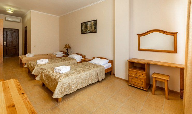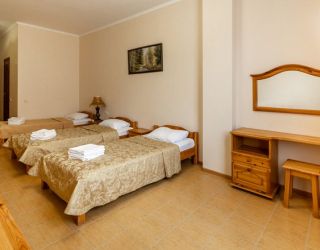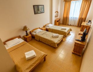 Восьмиэтажный корпус отеля, из окон которого открываются виды на Черноморские просторы, возвышается на небольшой закрытой территории. Номерной фонд отеля, рассчитанный на 115 гостей, предлагает отдыхающим 50 вместительных номеров разного уровня комфорта с собственной ванной комнатой и необходимой бытовой техникой.