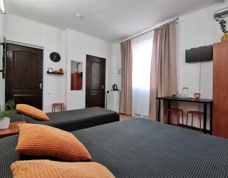 Номерной фонд располагается в 2-этажном здании. Комнаты оснащены кроватями, шкафом, журнальным столиком, прикроватными тумбочками, телевизором, кондиционером, электрическим чайником, мини-холодильником. Санузел с душем, туалетными принадлежностями, феном. Для желающих доступны номера с кухней на 2 комнаты. Возможно заказать еды и напитки в номер.