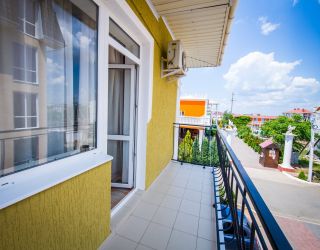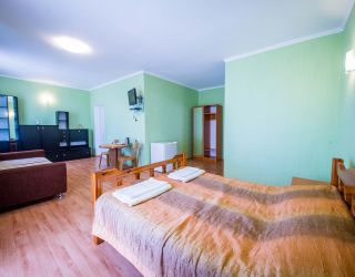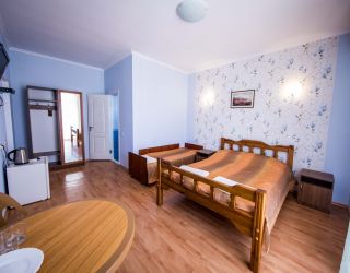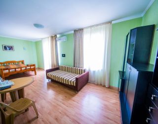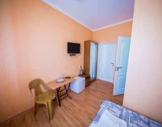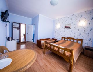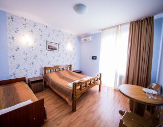 Четырехэтажный корпус отеля, разместившийся на первой береговой линии, занимает часть территории комплекса отдыха «Скиф». Гостей ожидают стандартные однокомнатные номера, рассчитанные на единовременное размещение 40 человек. Светлые просторные комнаты укомплектованы необходимым мебельным гарнитуром, везде установлен кондиционер, есть телевизор, электрочайник, набор посуды, телевизор, предусмотрен индивидуальный санузел с душем.