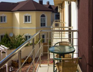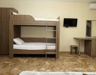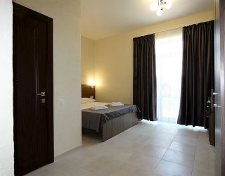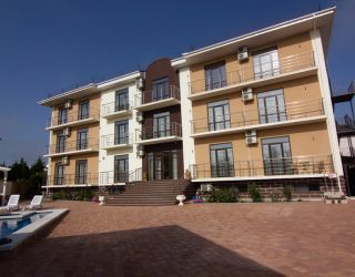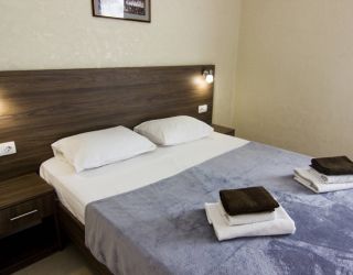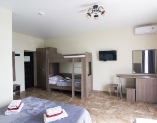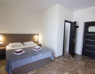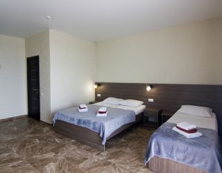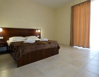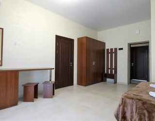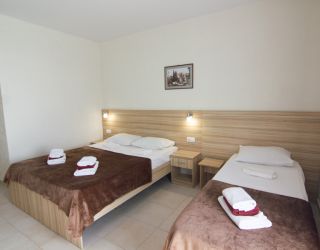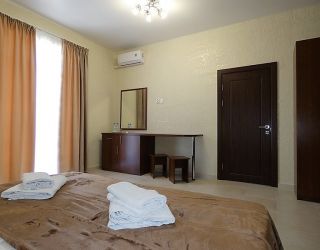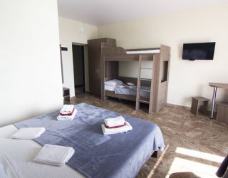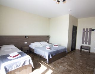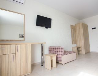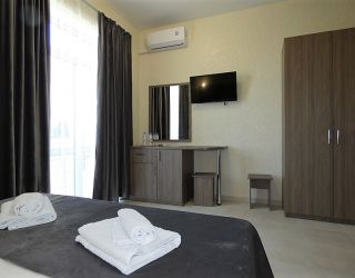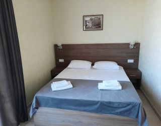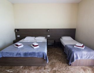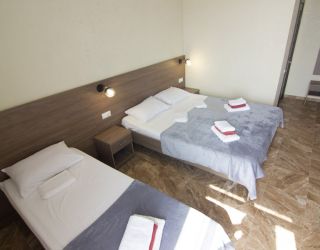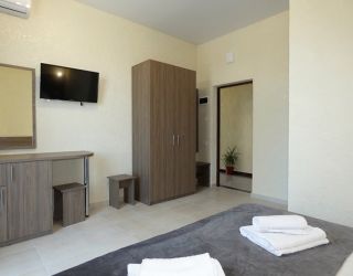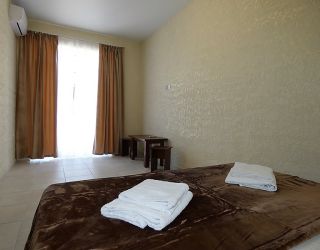 Трехэтажный корпус гостевого дома разместился в 900 метрах от берега моря. В распоряжении гостей однокомнатные и двухкомнатные номера