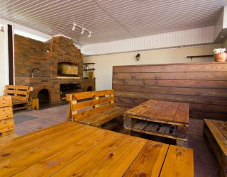 На территории организована зона для барбекю с мангалом, к услугам отдыхающих сезонный открытый бассейн, беспроводной интернет и парковка. За 10 минут можно дойти до оборудованного пляжа. На галечном побережье установлены навесы, лежаки, шезлонги.