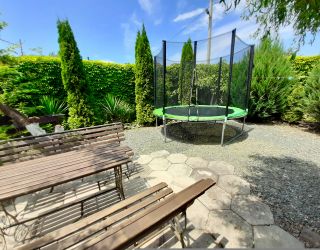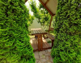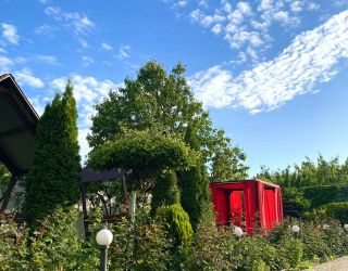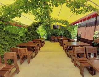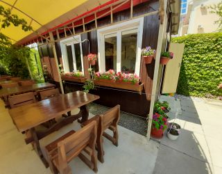 Организованное питание не предусмотрено, однако в гостевом доме есть общая кухня, где отдыхающие могут самостоятельно приготовить еду, а на территории обустроена зона барбекю с беседками. В распоряжении гостей беспроводной интернет, охраняемая автостоянка возле корпуса, для детей организована игровая площадка.