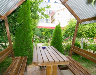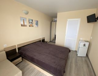 Трехэтажное здание гостевого дома (без лифта) расположено на небольшой закрытой территории площадью 1500 кв.м. Гостей ожидают однокомнатные номера Делюкс и двухкомнатные Семейные. В каждом номере имеется собственный санузел с душем, кондиционер, бытовая техника — телевизор, мини-холодильник, микроволновая печь и электрический чайник.